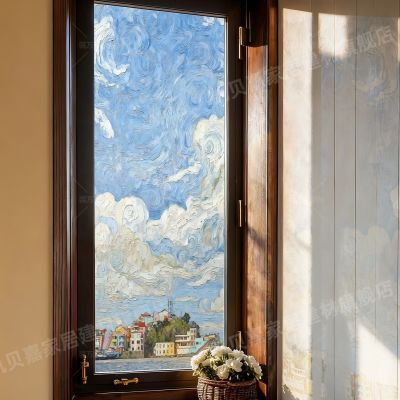 梵高油画创意玻璃膜定制磨砂贴纸卫生间窗户免胶静电贴画装饰门贴
