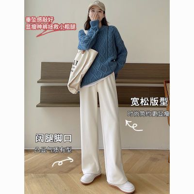 春秋新款ins百搭击打辣妹高腰拖地裤直筒雪尼尔奶油系带阔腿长裤【3天内发货】