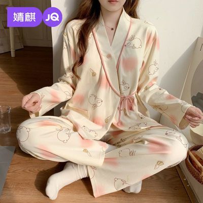 婧麒月子服夏季薄款产后哺乳怀孕期孕妇睡衣春秋产妇家居两件套装