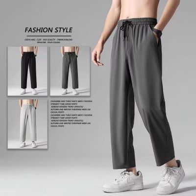 夏季新款冰丝薄款九分裤男 青春流行纯色运动休闲裤 宽松时尚潮牌