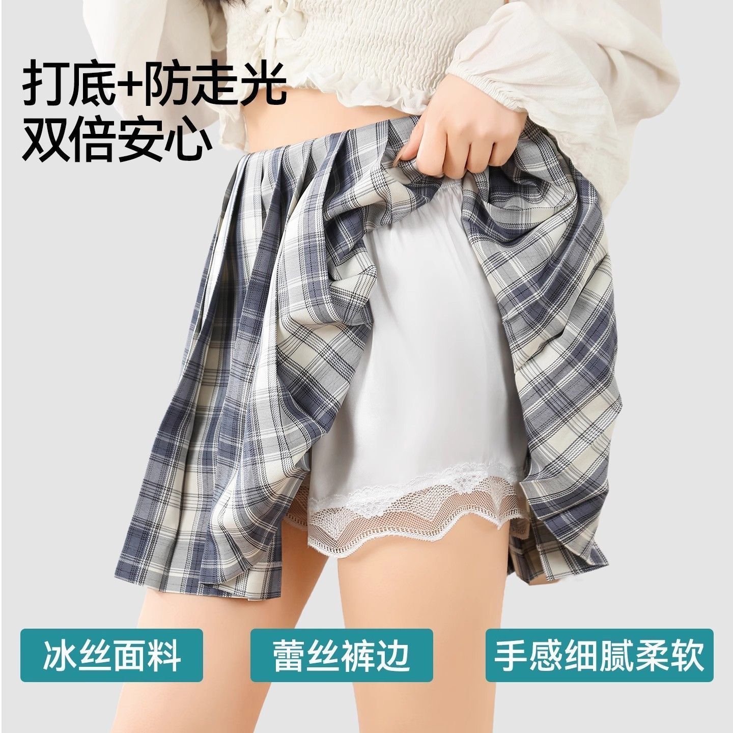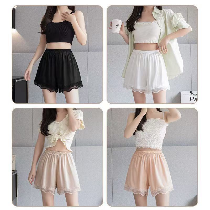 夏季冰丝安全裤防走光蕾丝边女大码居家薄款可外穿短裤宽松打底裤