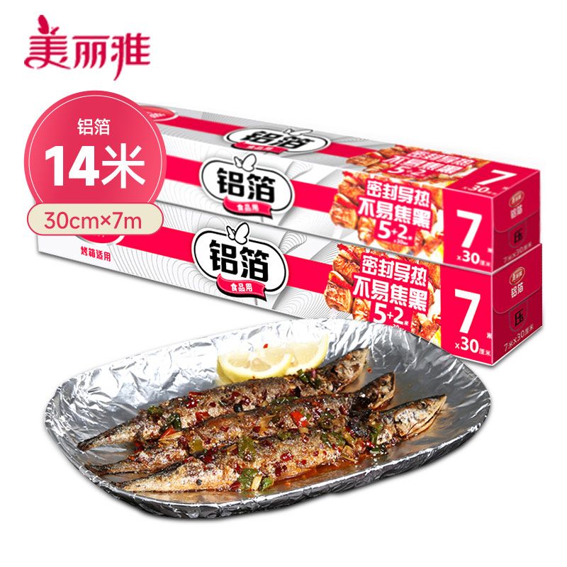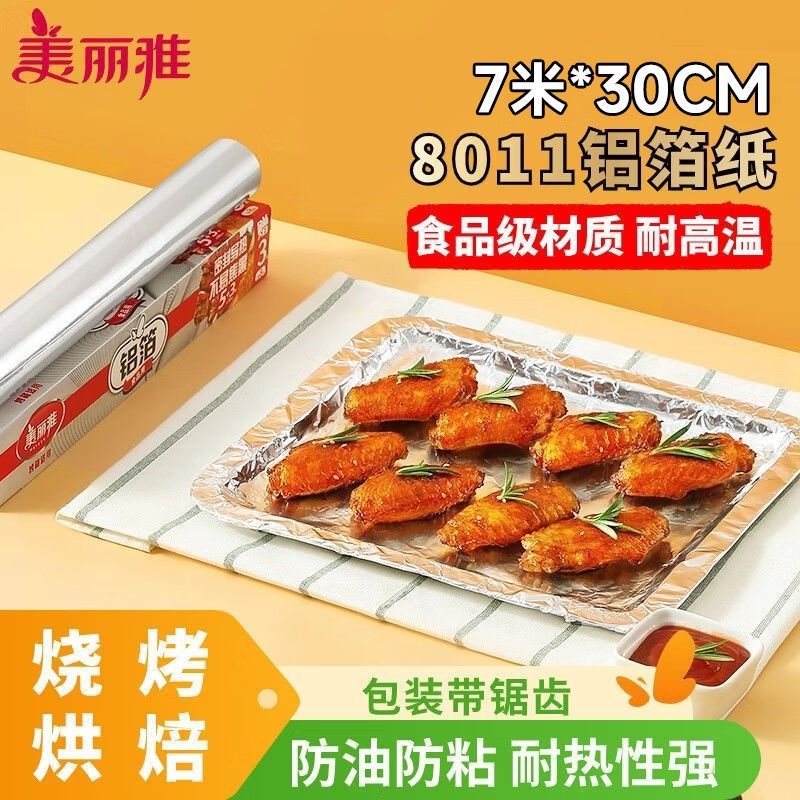 美丽雅锡纸烤箱空气炸锅家用加厚烧烤铝箔纸厨房烤盘烘焙油炸油纸