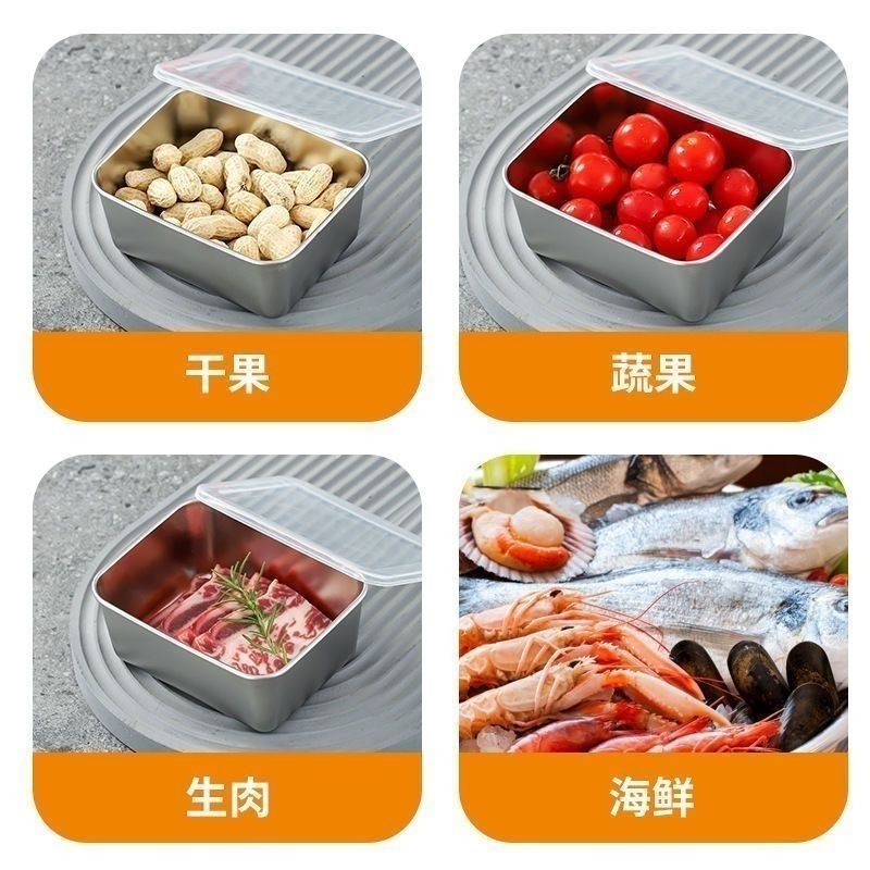 食品级不锈钢带盖保鲜盒上班族便当长方形桌面收纳盒