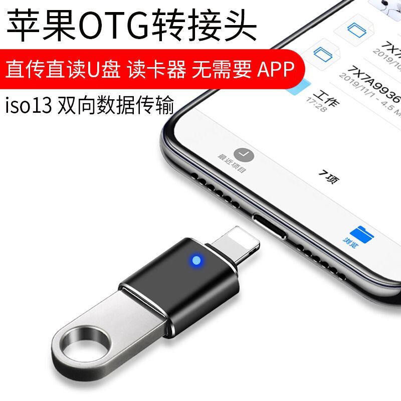 适用苹果OTG转接头手机外接U盘转换器新款带灯连接读取传输下载