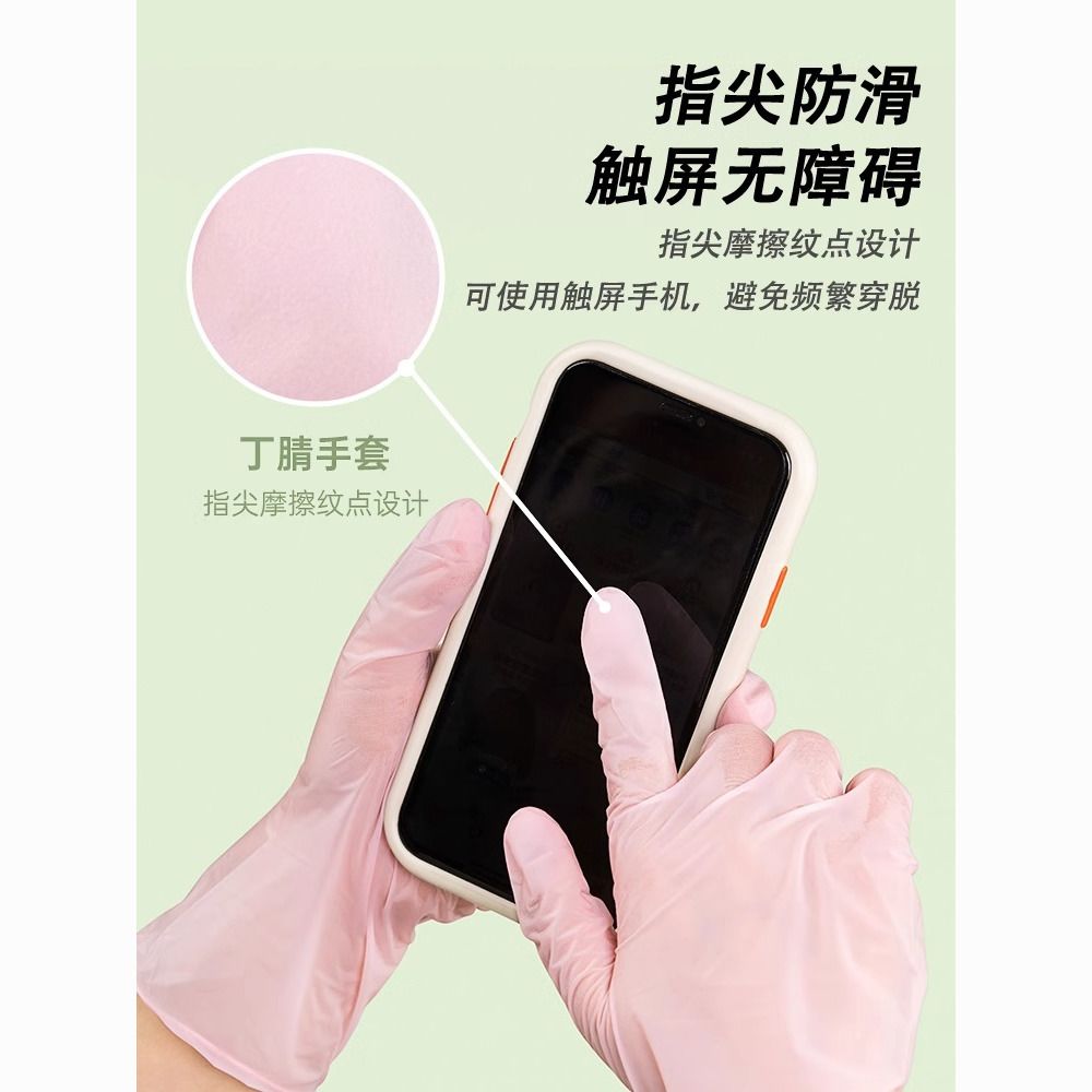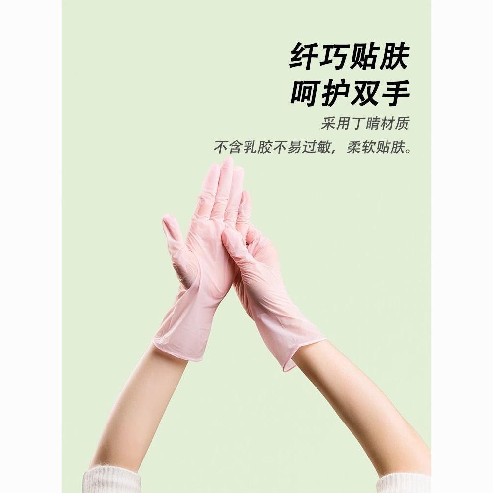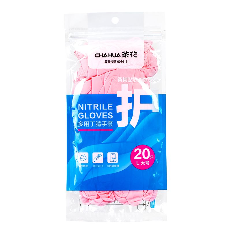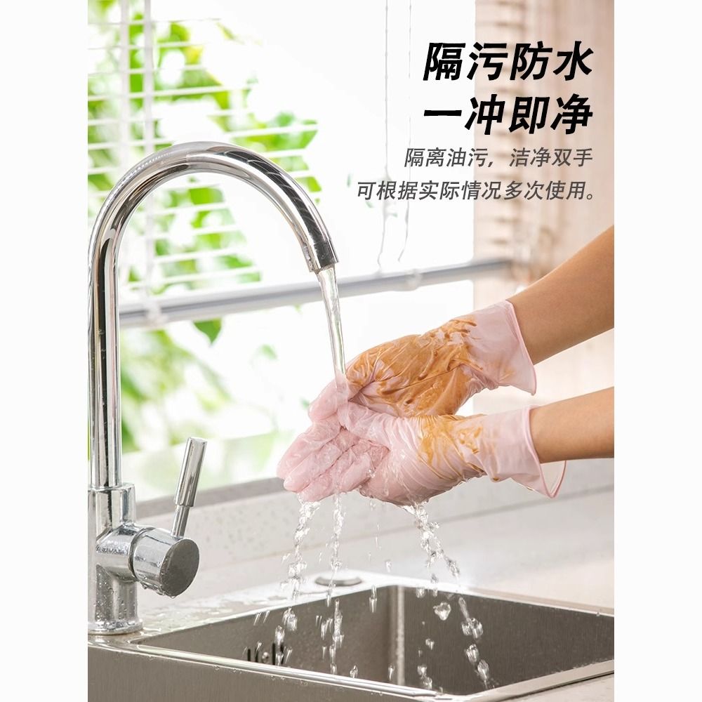 茶花一次性洗碗手套女家务清洁厨房耐用食品级加长丁腈家用薄贴手