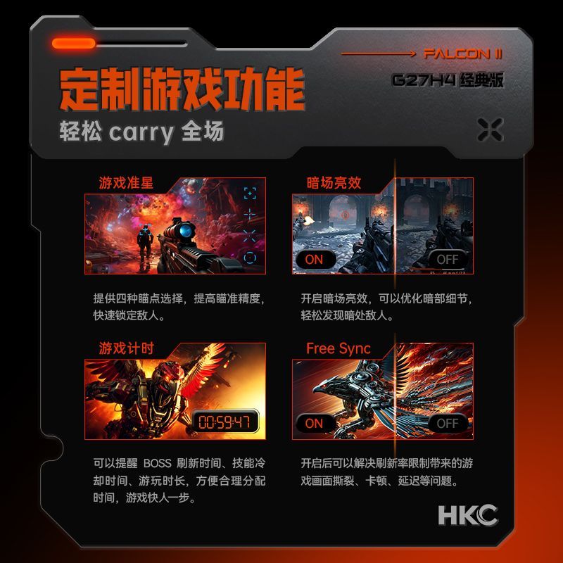 HKC27英寸260Hz高刷2K高清IPS电竞显示器HDR400低蓝光G27H4经典版