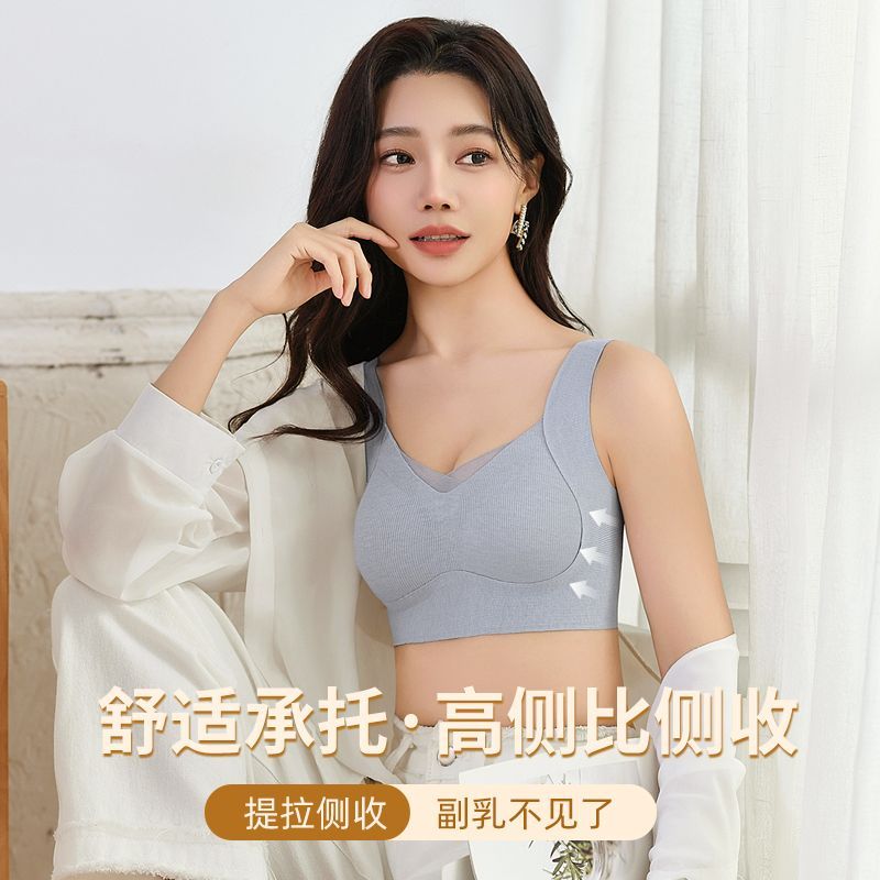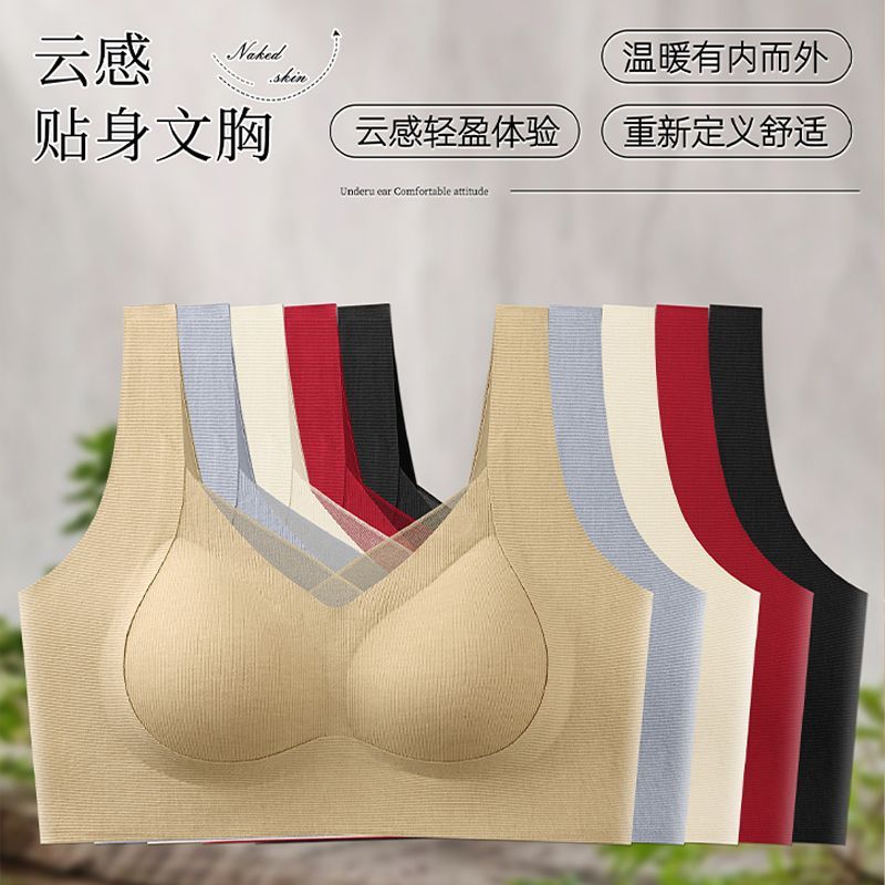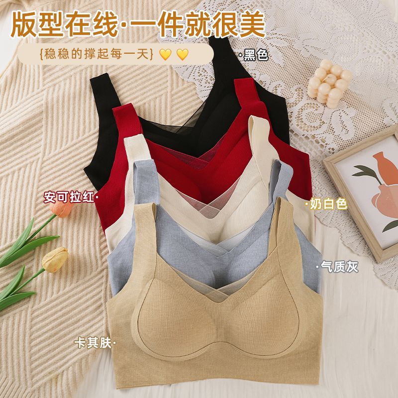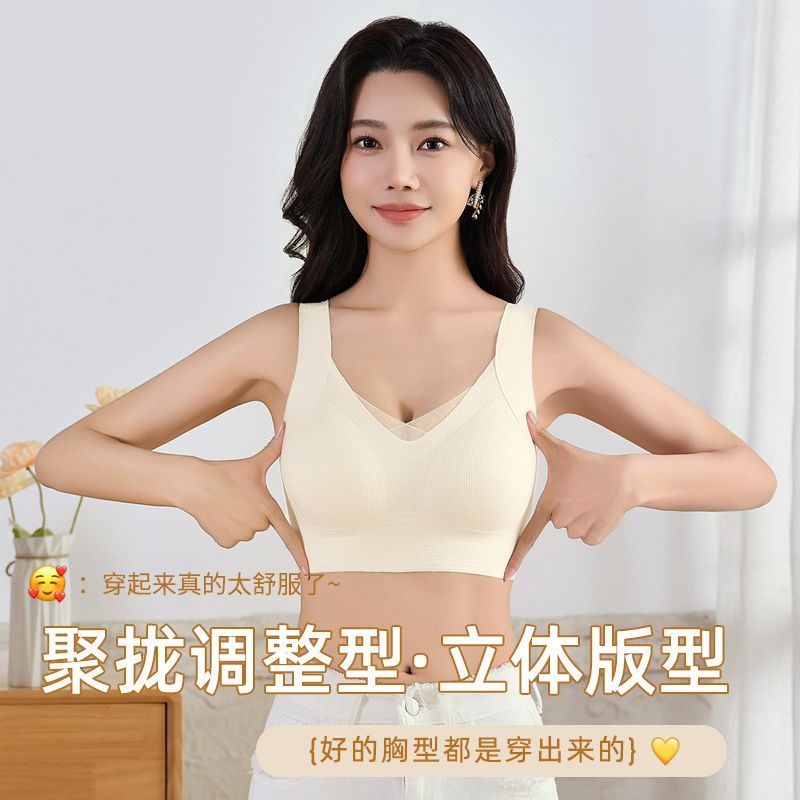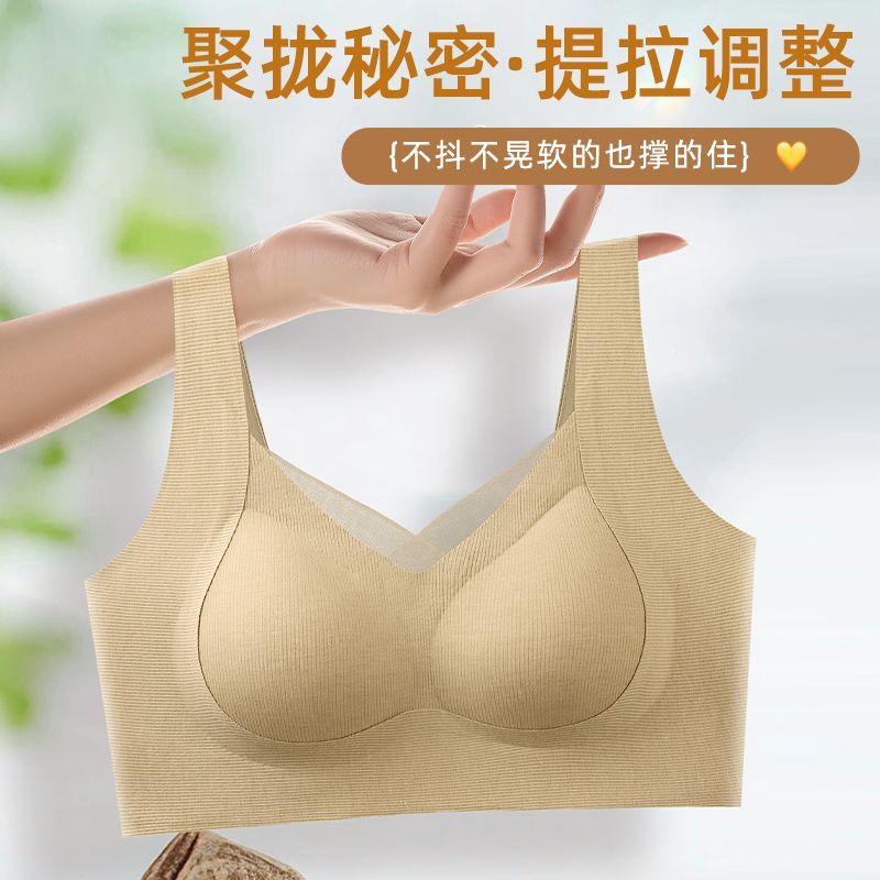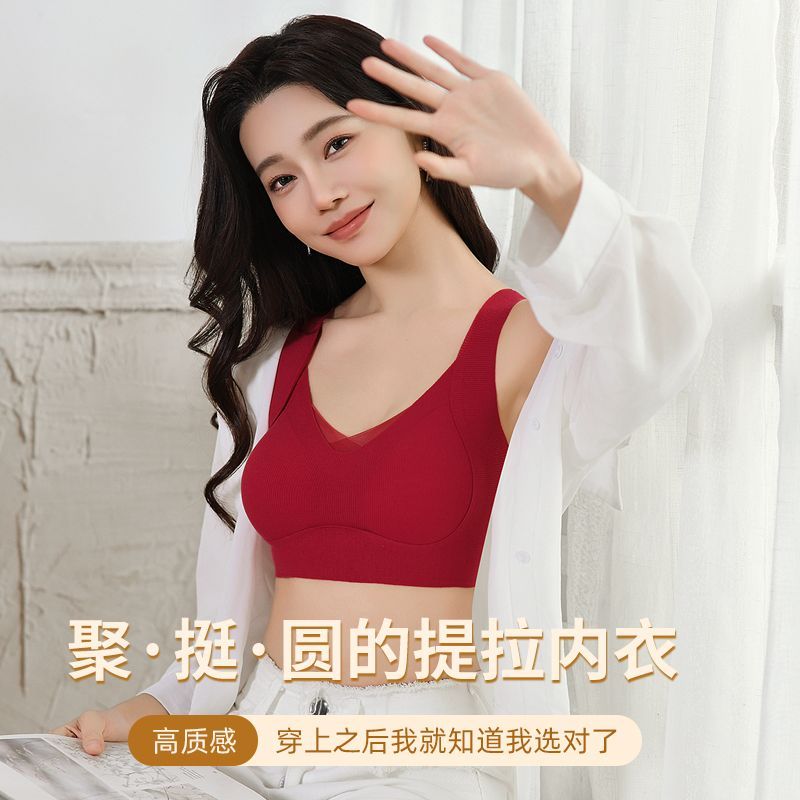 内衣女小胸聚拢收副乳防下垂舒适透气无痕运动美背无钢圈红色文胸