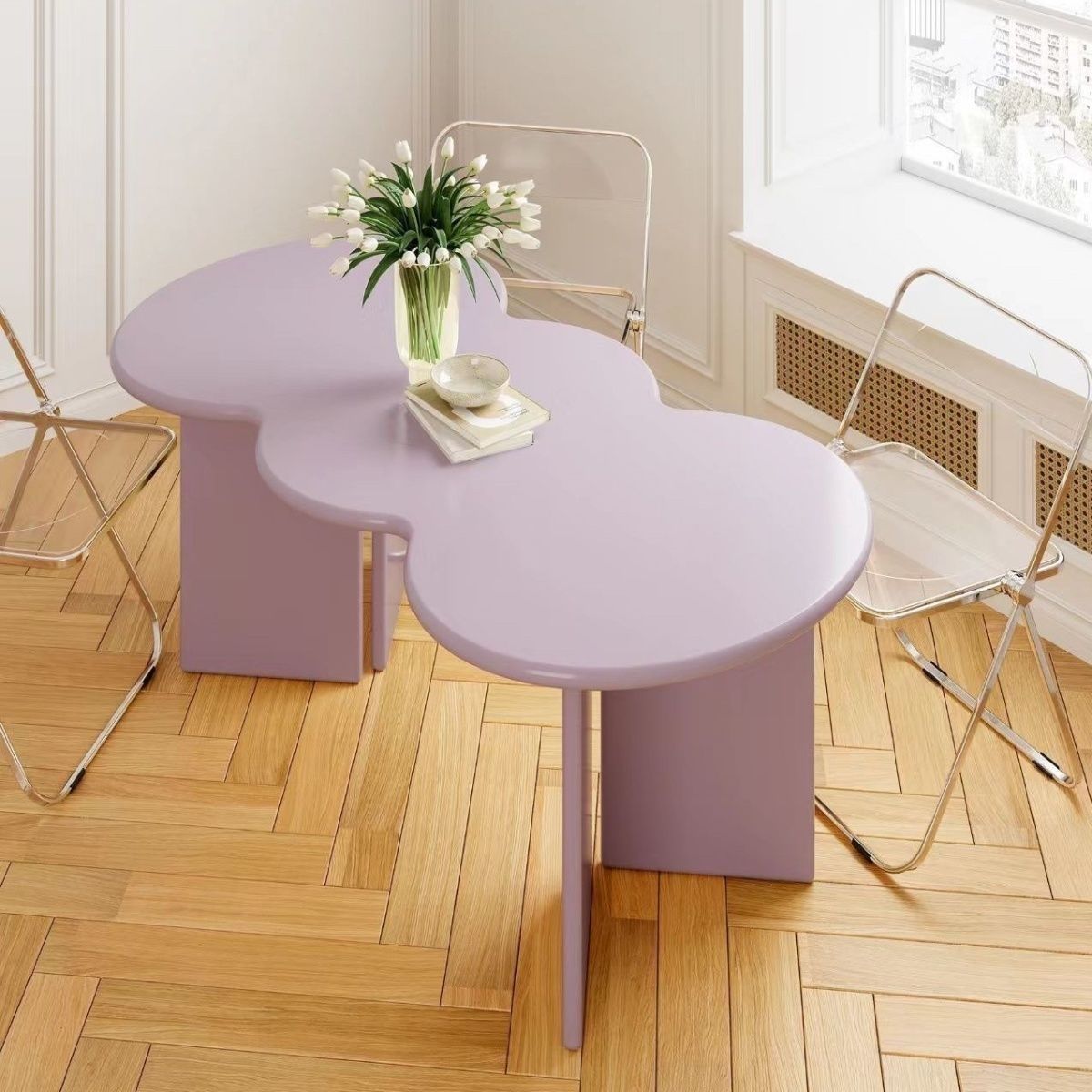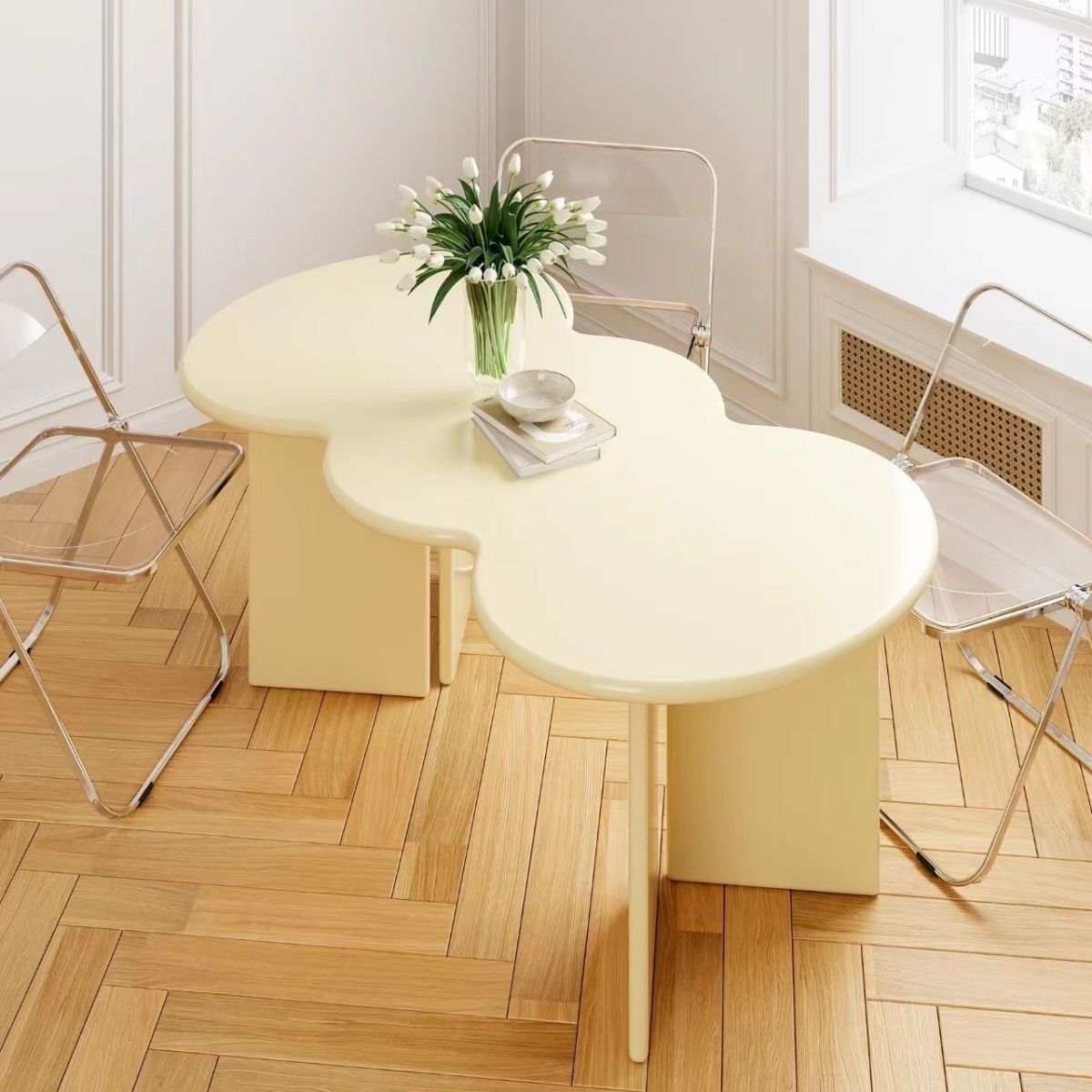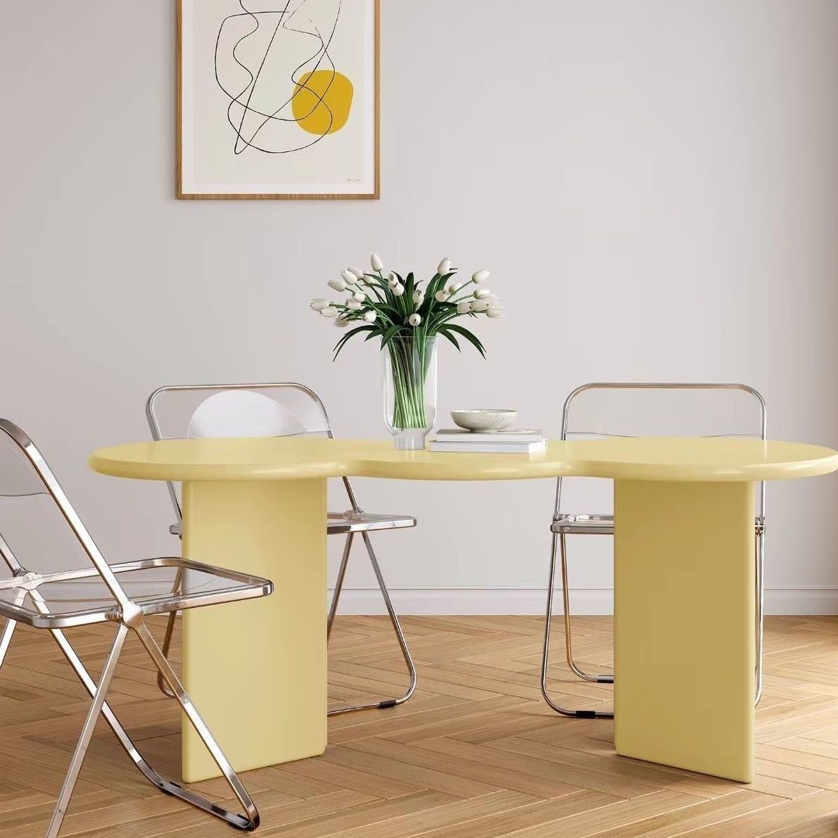 北欧ins奶油风办公桌异形不规则餐桌设计师现代简约家用波浪书桌
