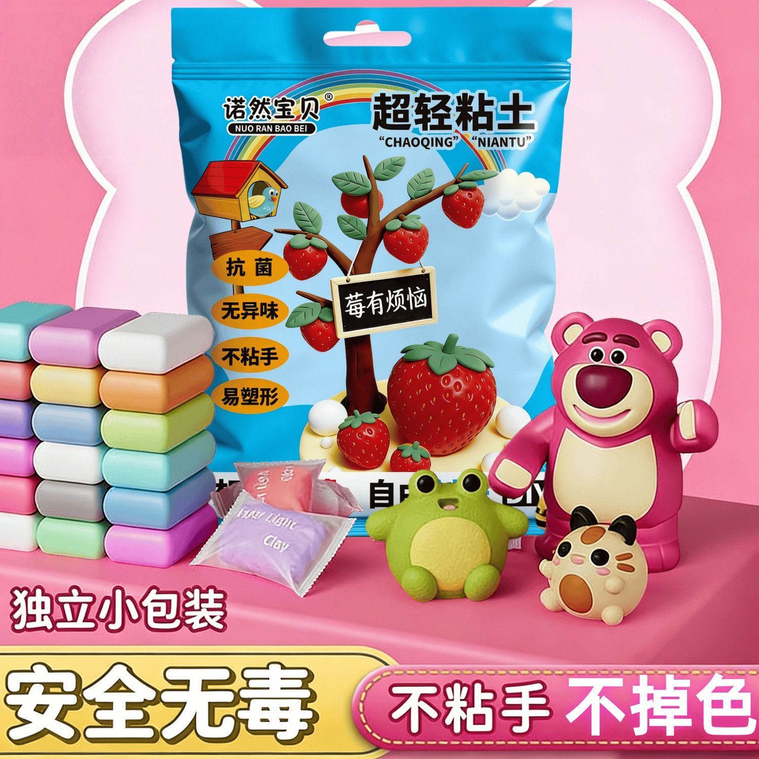 老师推荐诺然宝贝超轻粘土草莓主题创意手工DIY套装安全无毒