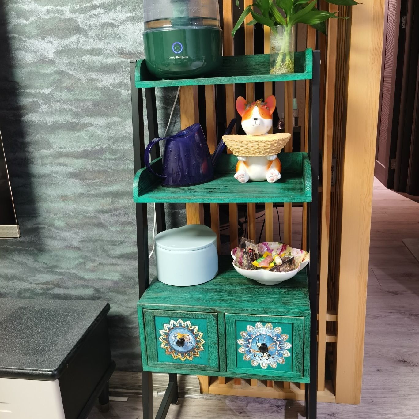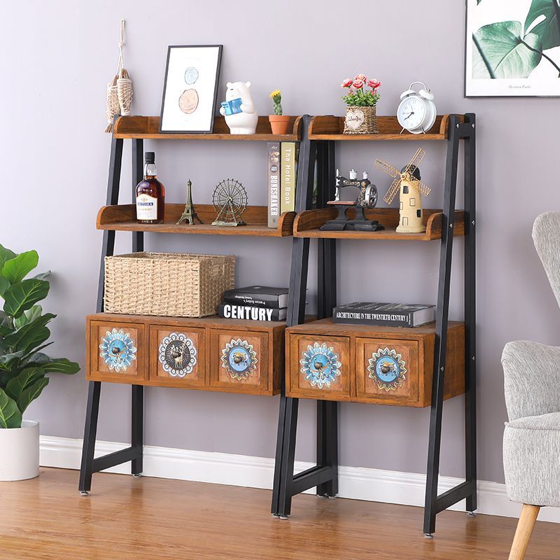 美式置物架多层收纳层架民宿装饰家俱花架子客厅落地复古实木斗柜