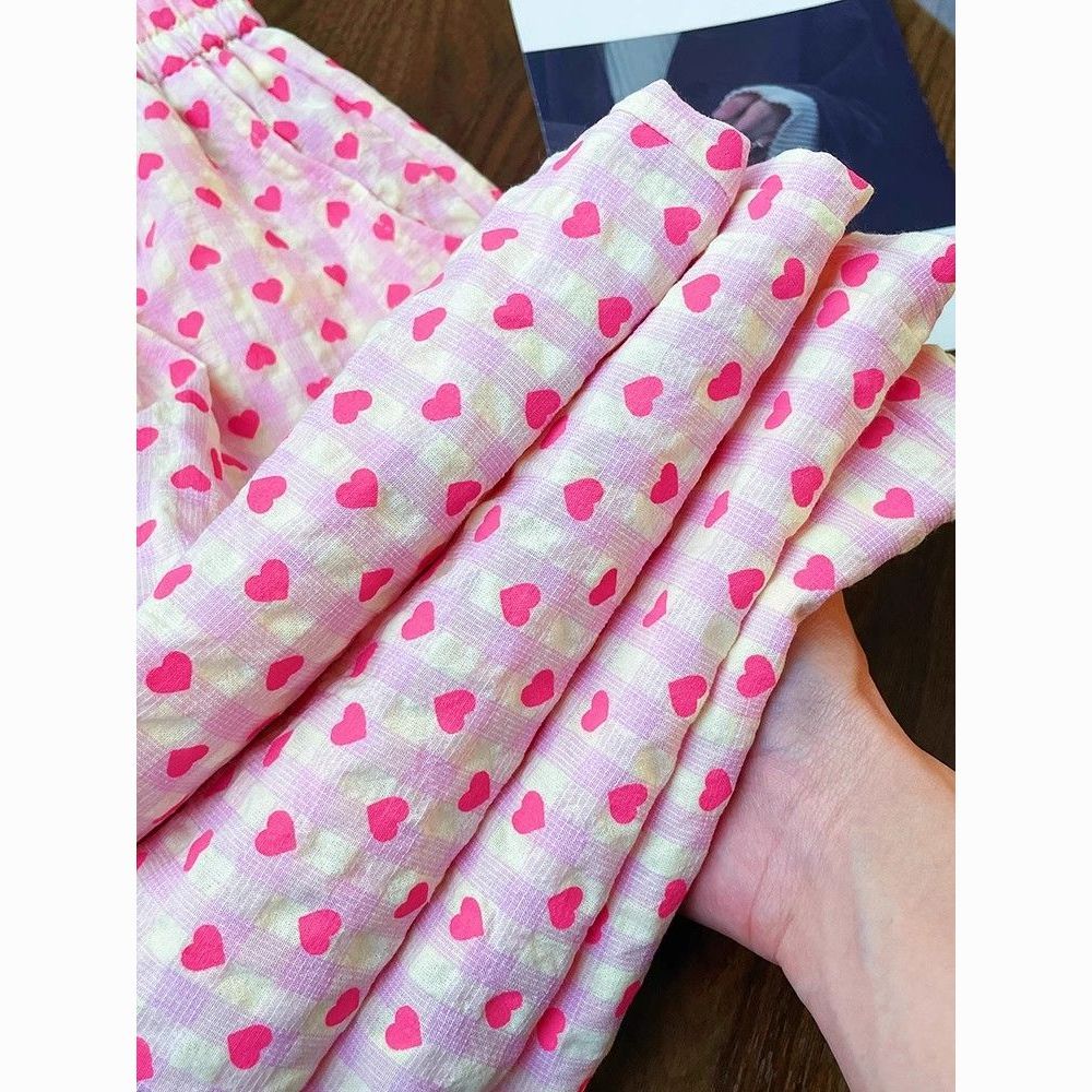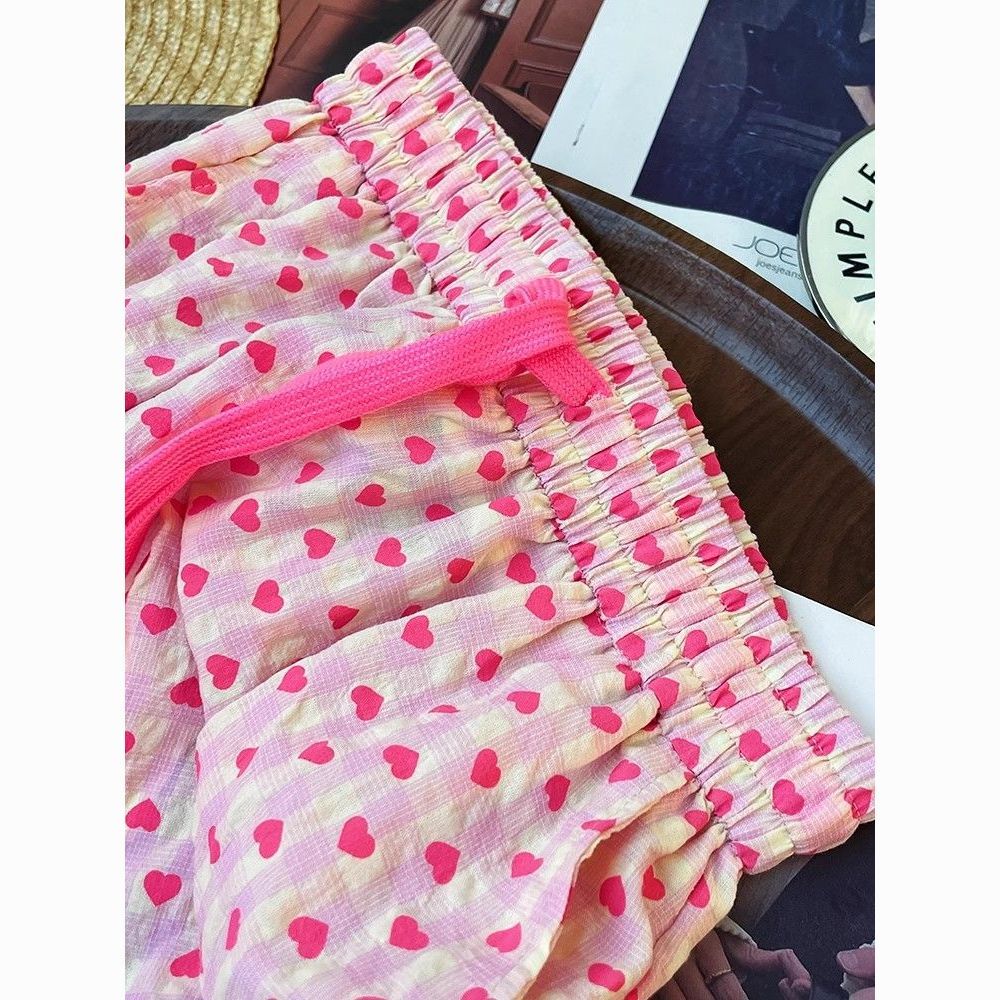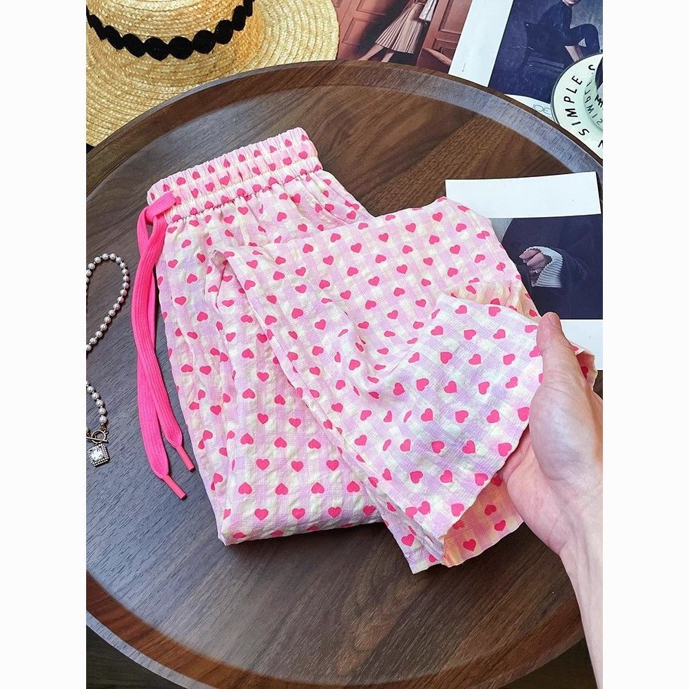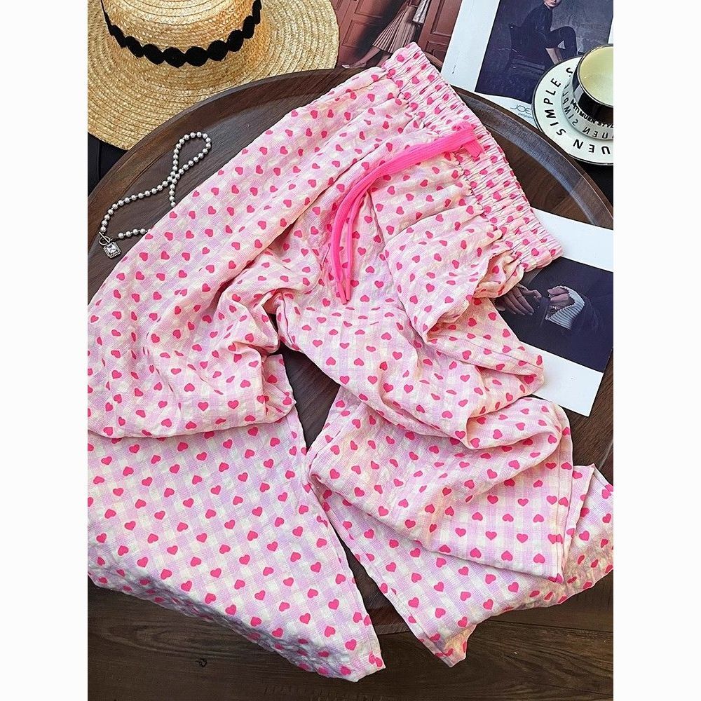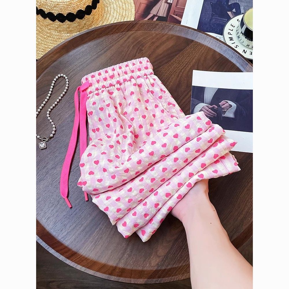 胖mm大码甜美俏皮撞色爱心印花阔腿裤女夏季小众百搭ins休闲裤子